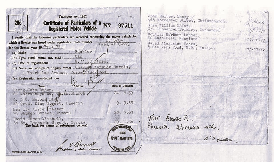 Buckler NZ purchased the car and brought it to Auckland. Bucklers in England have
