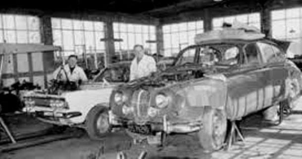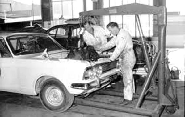 Sorry for such a small photo will try & enlarge , this shows Peter & Ernie getting the Jag ready for SI production races plus one of the Mk4 zephers for Puke , I always loved this work shop as Dad thought about the light aspect getting as many windows as possible.