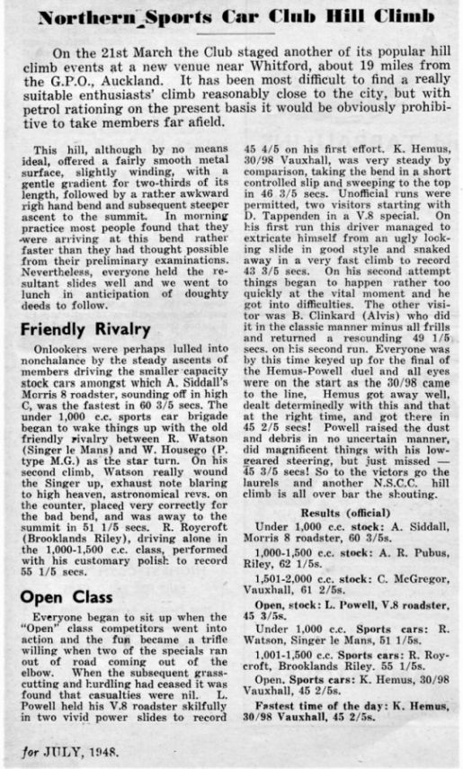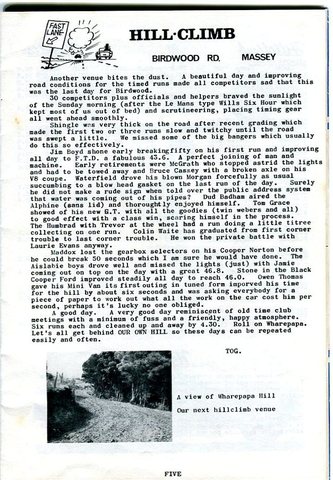 ** Have now re-found an article about the last running of Birdwood Road in 1964 or 65 ! after that the new hill was to be Wharepapa Road, Helensville
