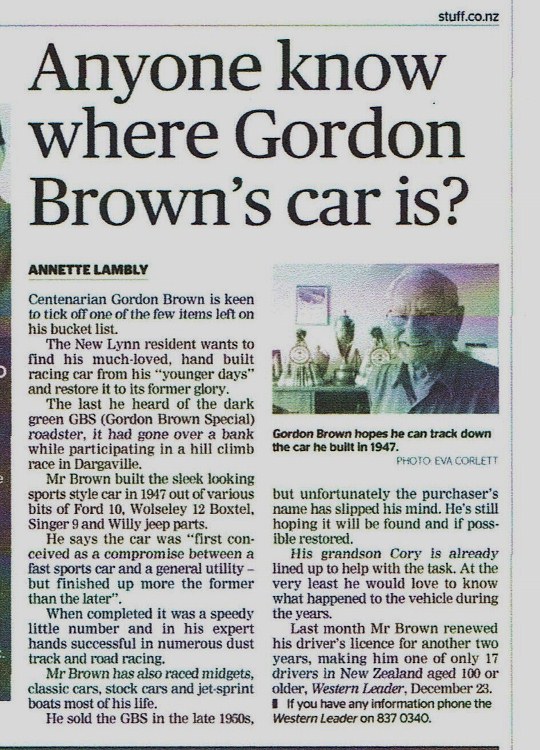 The GBS - Gordon Brown Special - notes I have indicate Gordon did build more than one car as stated here by Graham Vercoe [ without getting into a discussion on the accuracy of his books " a 1904 cc Ford V8 - 60 " ?? ] .