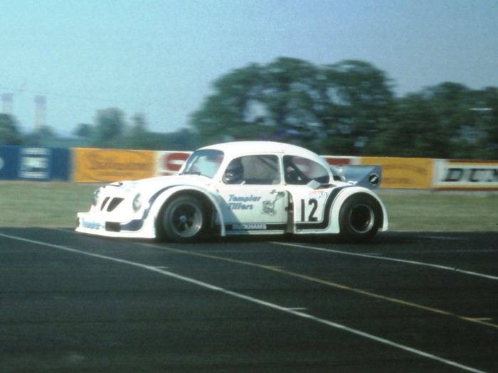 "A new monster car based on an old shape appeared from the Hill stable for 1976 with the creation of a VW Beetle like no other. Based on a F5000 Trojan T102 and powered by the 530 bhp Smith-Chevrolet V8 from the March, rebuilt by Hill.
