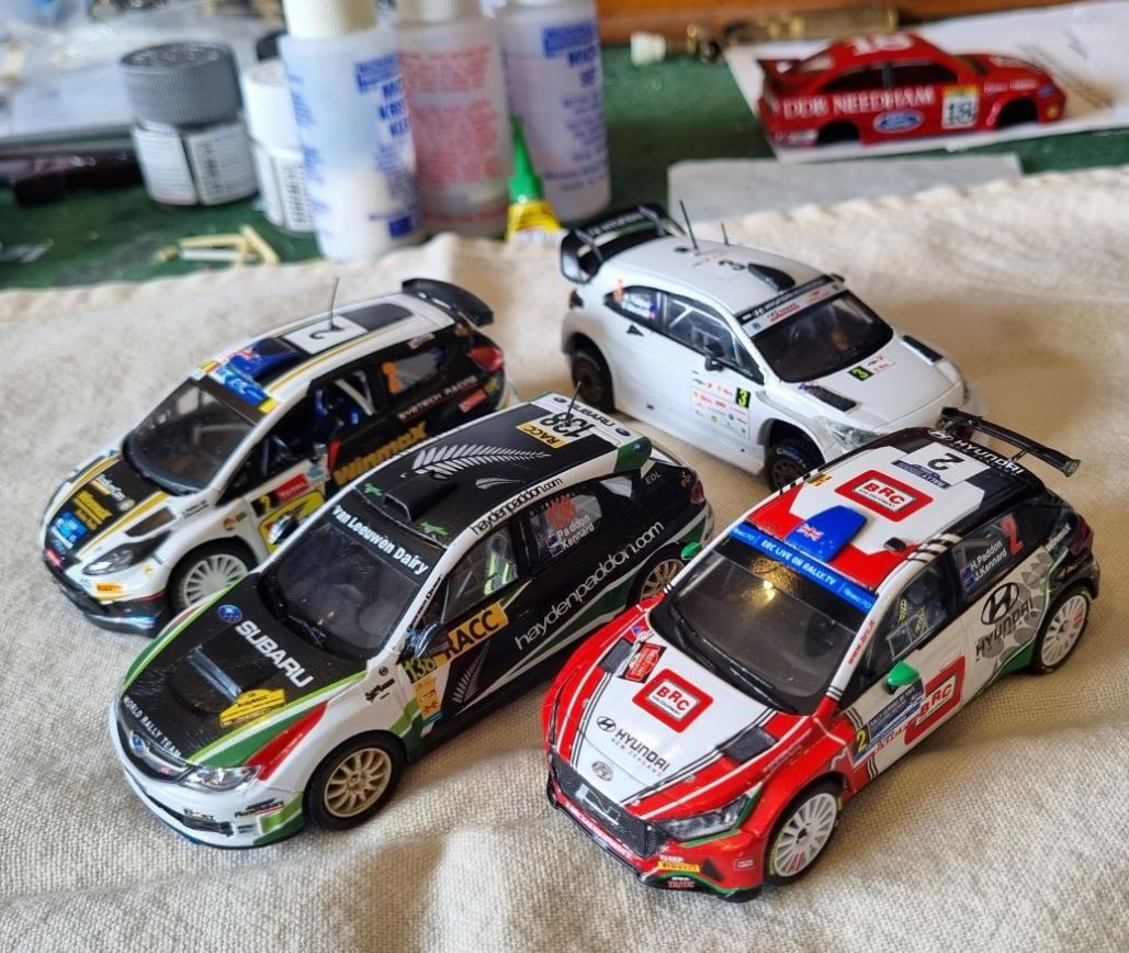 The Fiesta S200 from the ERC Ypres Rally in 2013; the first rally (I think) with his new co-driver Seb Marshall Estonia 2018 (the white i20); then perhaps his 2nd most important car, the Subaru in which he and Kennard won the world championship with and last in the group their 2023 ERC winning Hyundai. I have the decal set for their 2024 championship car along with decal sets for 2 Skoda's they competed in so those will be for the coming year. All these 1/43rd decal sets are still available I think so give it a try! There are also a 1/24th Skoda and Fiesta which I have but yet to complete. And yep that is the DDB Needham Sierra bodyshell in the background.