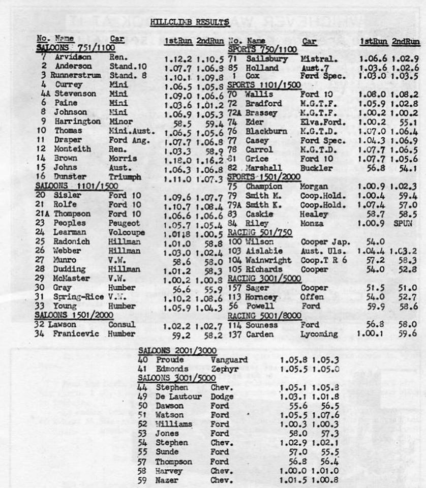17/12/1961 Ostrich Farm Road, Pukekohe - the NSCC's Gold Star Championship Hill Climb