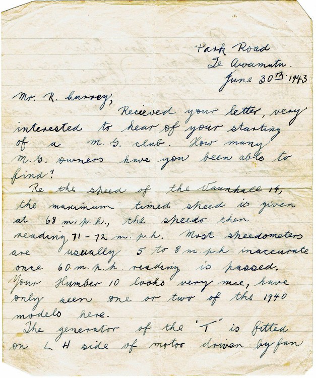 Bob had with him a letter from 1943 from a G Newsome to R Currey about forming of a club for MG's [ Sports Cars ] - It is about the formation of NSCC and in pencil on the back are notes about the club and who would be the original committee.