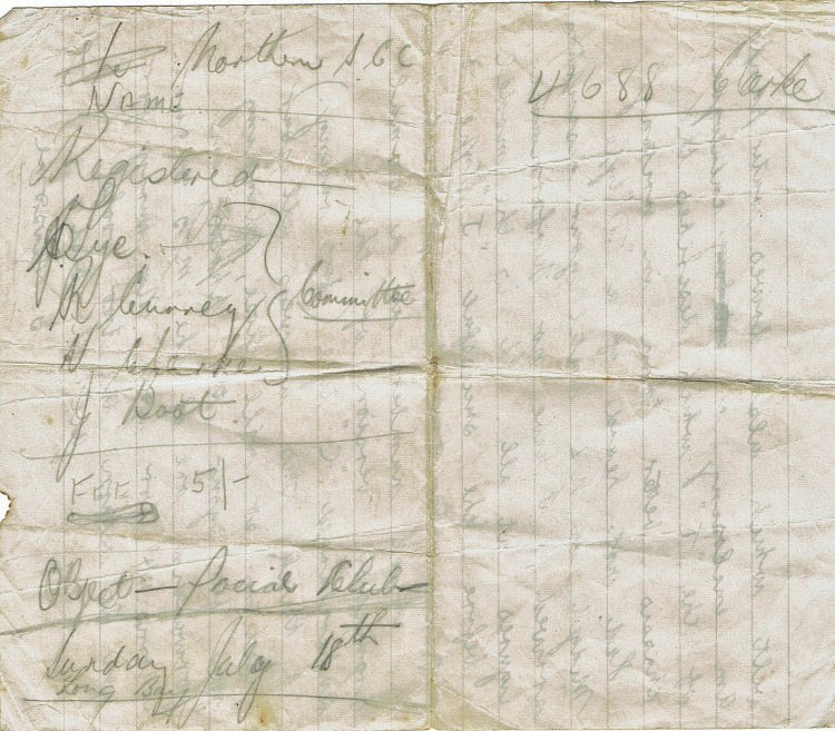 The letter written in June 1943 by G Newsome to R Currey. R Currey became the Clubs first Treasurer.