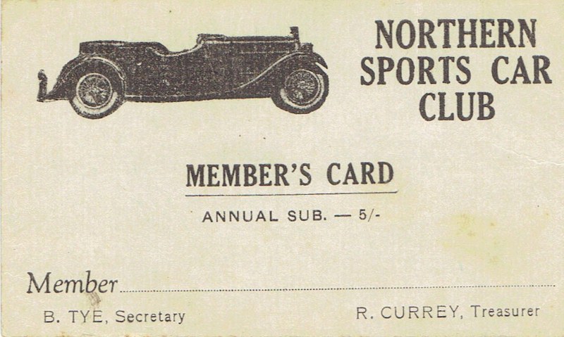 Included in what Bob gave was also an early Membership Card with B Tye and R Currey listed on the card in their positions within the Club