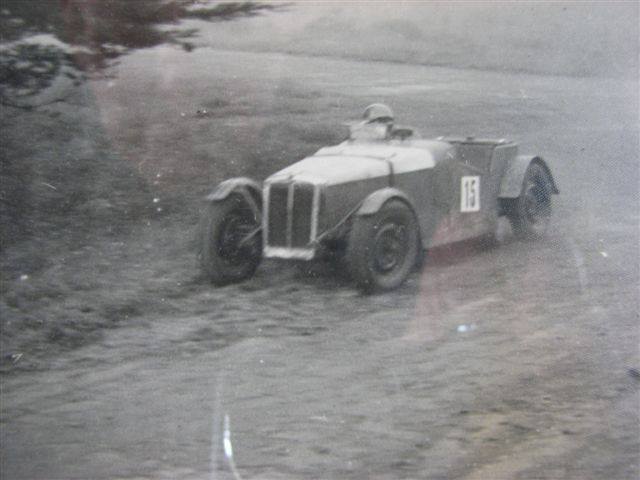 " PS After having located the photo on on page 2 of the Vercoe book, I am confident that the second car is indeed the first Singford, with its unpainted one piece aluminium bonnet removed. The third car is not that of Ivy Stephenson who owned a normally aspirated MG TD with disc wheels.. "