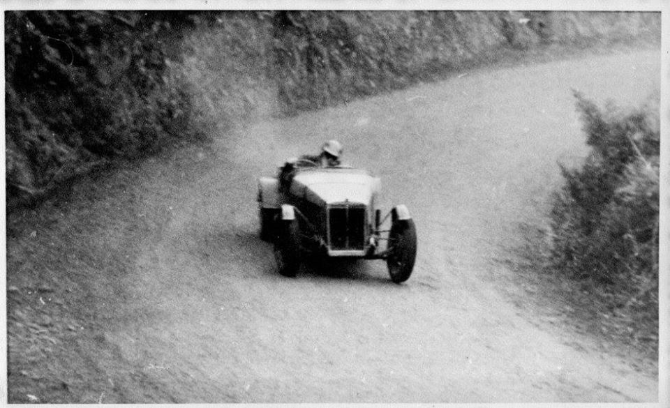 Taylors Bay Hill Climb in 1945 date confirmed 20th May from the Arthur Siddall Album page - seated in Graham Wells Bentley - they are in the back seat - very crowded it was too