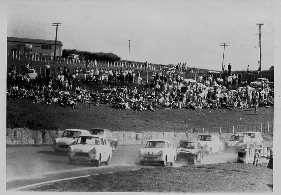 " The reverse direction meeting was to test a theory put forward by the great Jim Clark, who felt the normal direction was dangerous if a car came unstuck approaching the top of the hill. He felt it would fly into the hill stand. The track had approval for one meeting only to be run in that direction. Without the necessary approval a permit would not have been issued by MANZ. The hedge and fence at the end of the back straight were removed after negotiation with the land owner to provide a run off. "