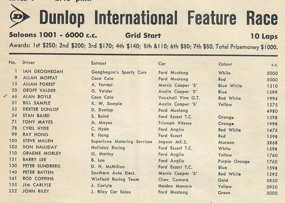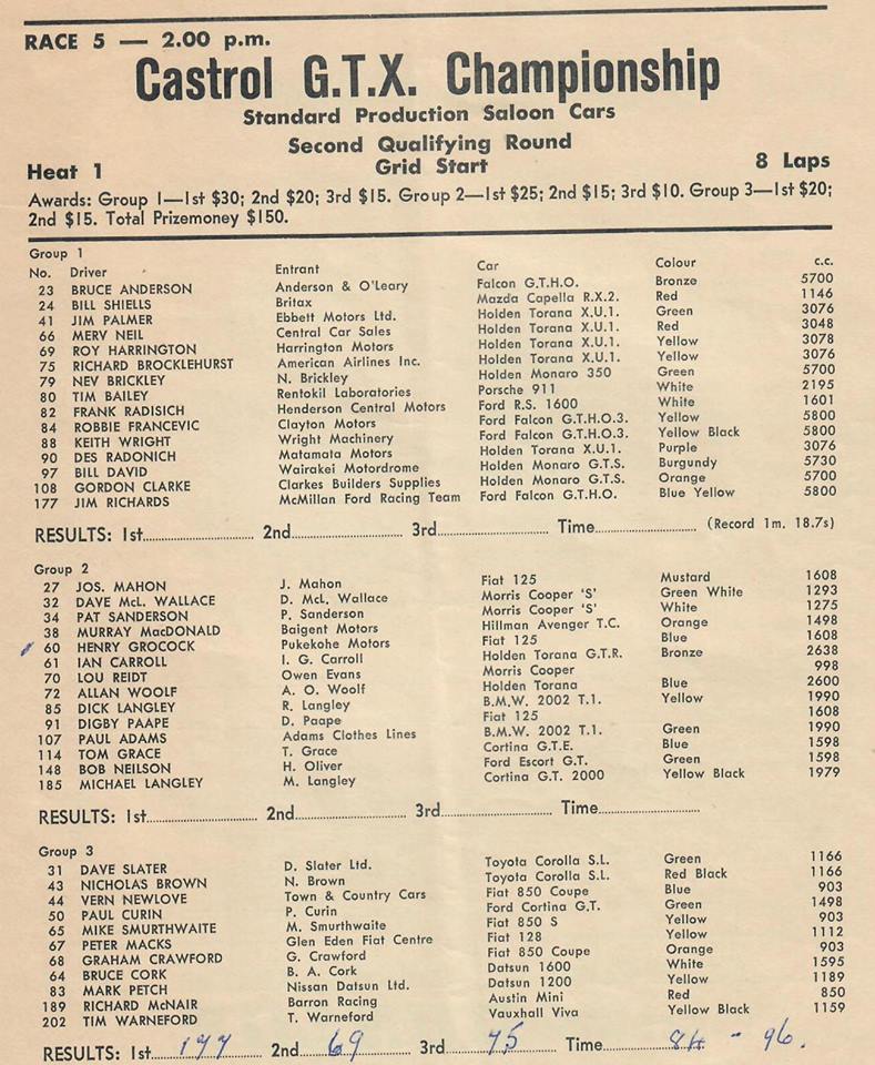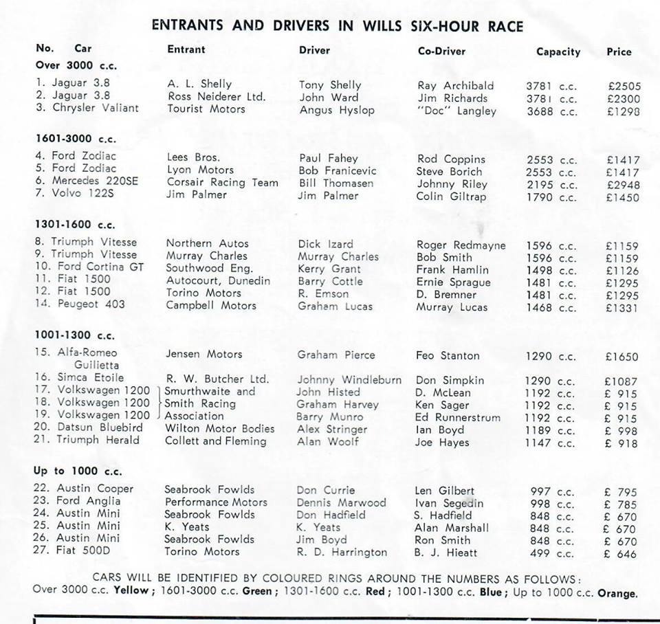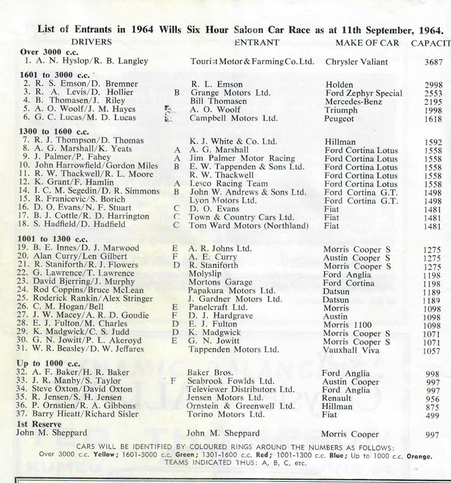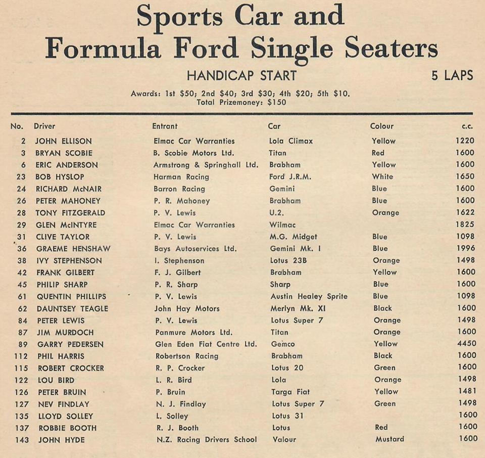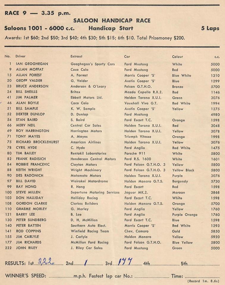 Pukekohe - some entry lists .. Thanks to Graham Woods.