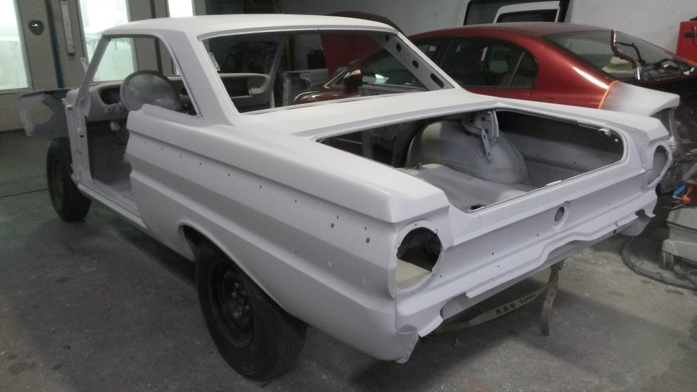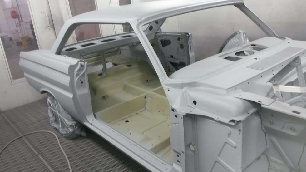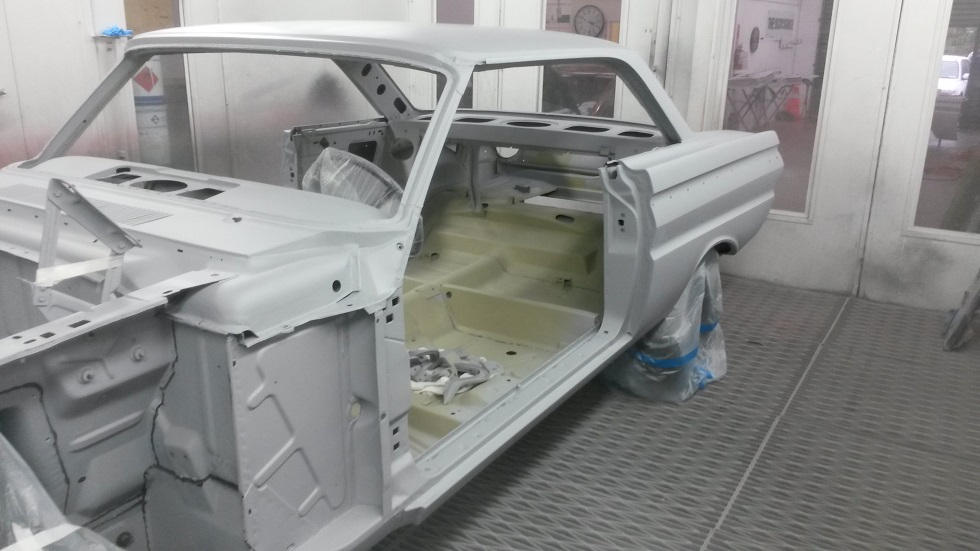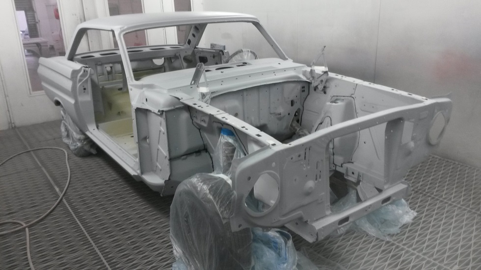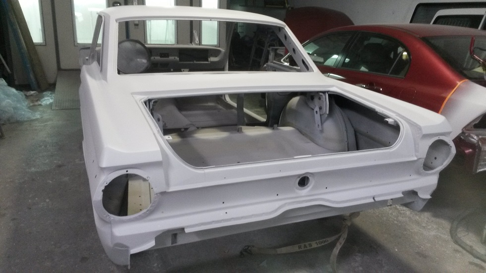 Epoxy urethane etch primer, (all steel body at this stage) 289 K HiPo motor being built to FIA H-M spec's