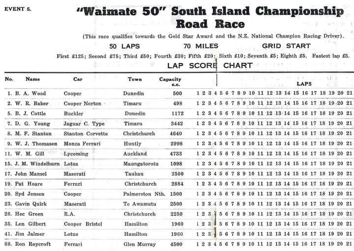 Entry List for the 1960 " Waimate 50 " the feature race.