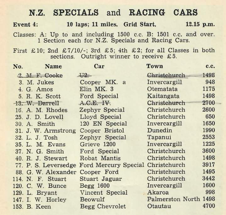 Others are Alan Rhodes 260M Zephyr, John Armstrong Cooper Bristol and Arthur Smith 120EN with a 1500cc motor.