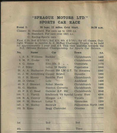 The Race was open to Racing and Sports Cars, including some NZ Specials ..