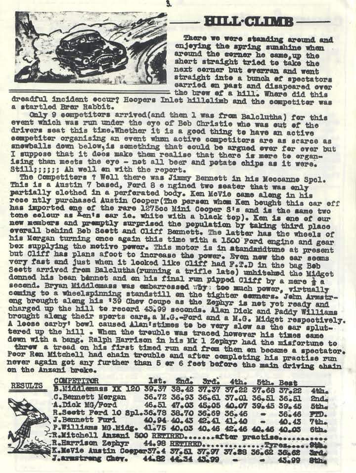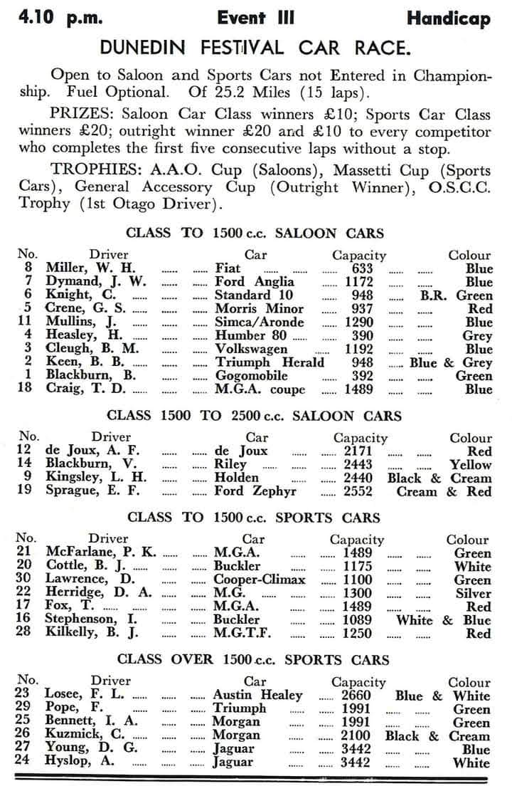 " - Organised by the S. C. [ South Canterbury ] Car Club and held under the International Sporting Code of the F. I. A. and the National Competition Rules of the A. N. Z. C. C. Inc "