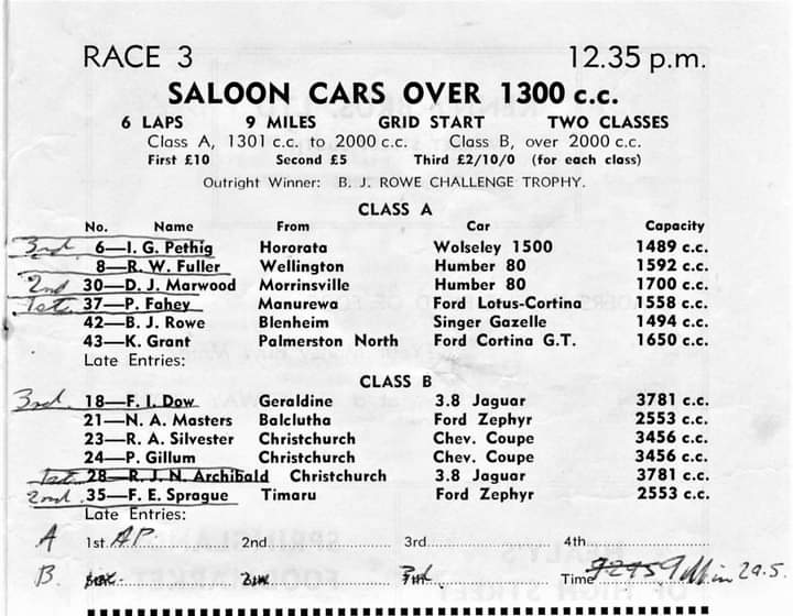 1967 The Timaru Street races, exact date not known but must have been early in the year as the Prize Money was in Pounds Shillings and Pence - so pre 10th July.