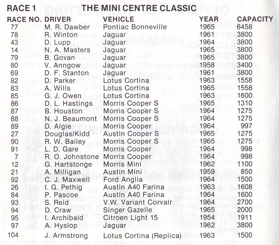Entry List for the Festival Race for Saloons and Sports Cars not entered in the " Main " Race ..