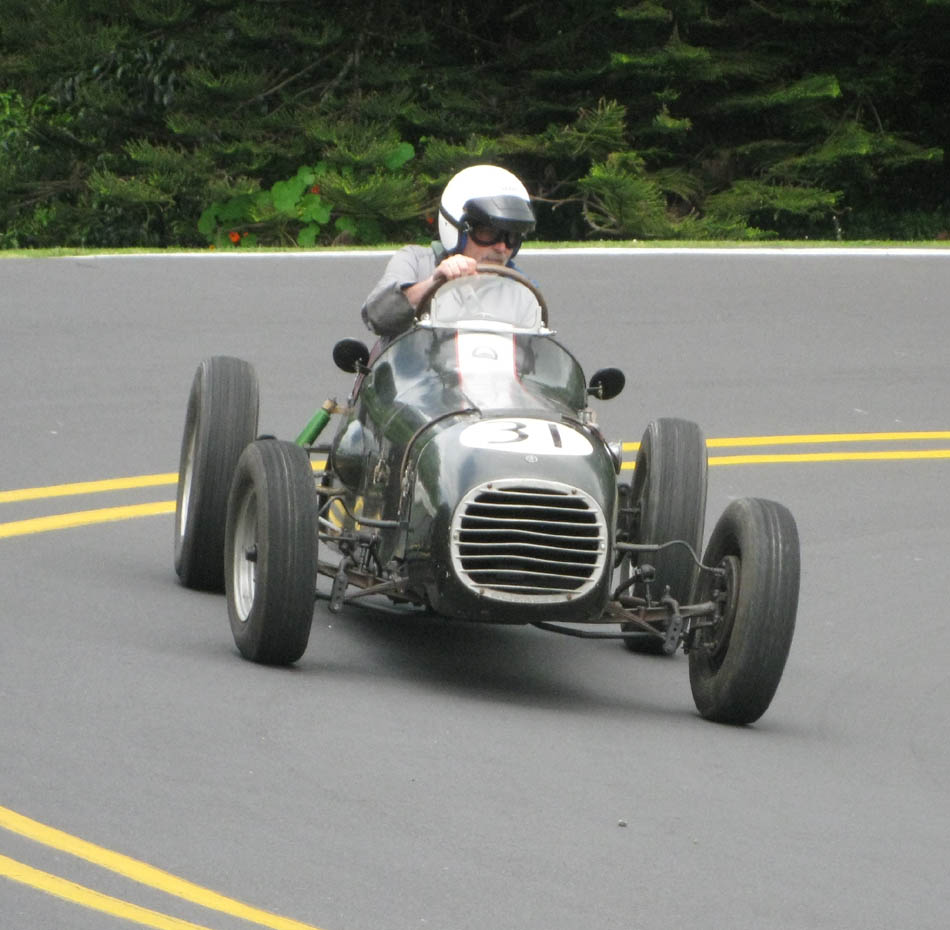 It has had a long history since 1947 when it was built by Des Herrick as a speedway midget with a B4 engine. Got a Hudson Terraplane engine in 1948 then converted to a circuit car in 1950 with a Model T rear end and a Bugatti box. Then got an A40 engine when the Hudson expired, then a Singer gearbox (when Chris Amon had it) ....... and on it went with each subsequent owner "improving" it. It still has bits of the 1947 midget but not much .... a bit like grandad's axe ....
