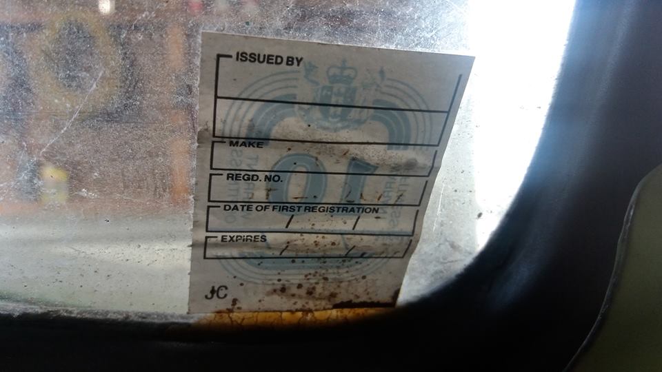 Warrant of Fitness sticker on the vehicle .. looks like an American 1940's style vehicle