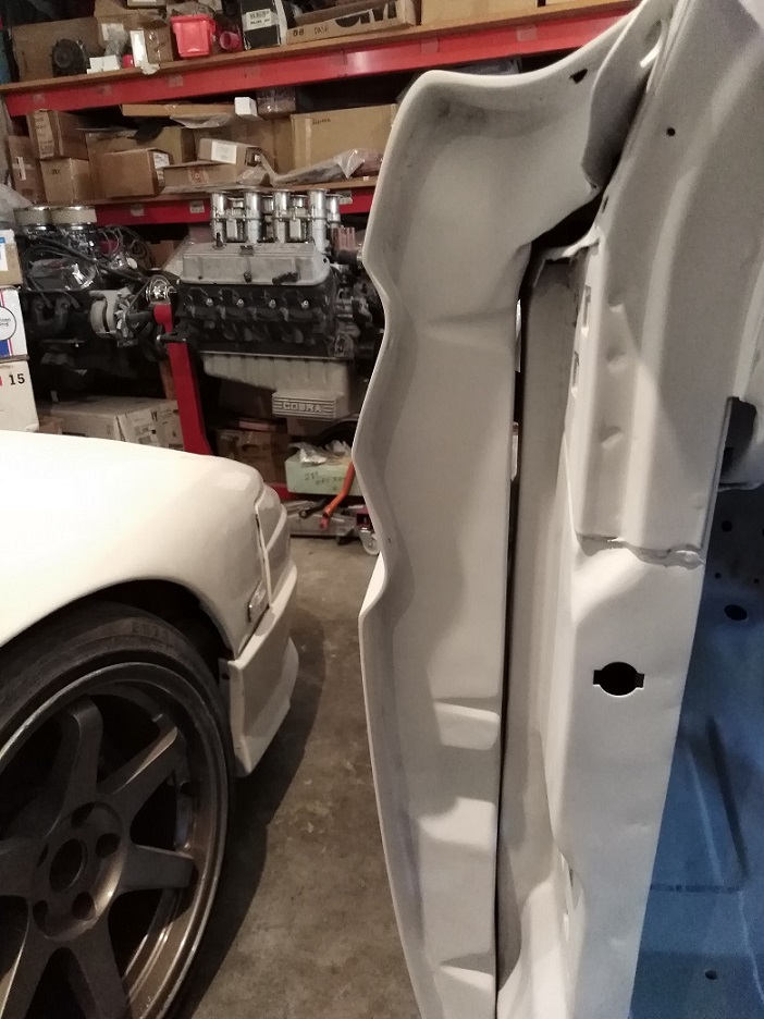 Its always nice to get a car perfectly straight for paint, after blocking this down over 4 times through all the sand paper grades, it is very clear that there will be some more movement in the race weight fiberglass. Albeit after 2 years the movement is a lot less now.