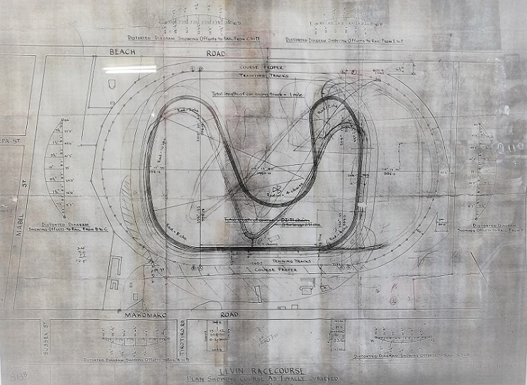 (Note the horses off to the right with their harnesses set up to grade the track surface. The track was surfaced with disintegrated granite. DG. )
