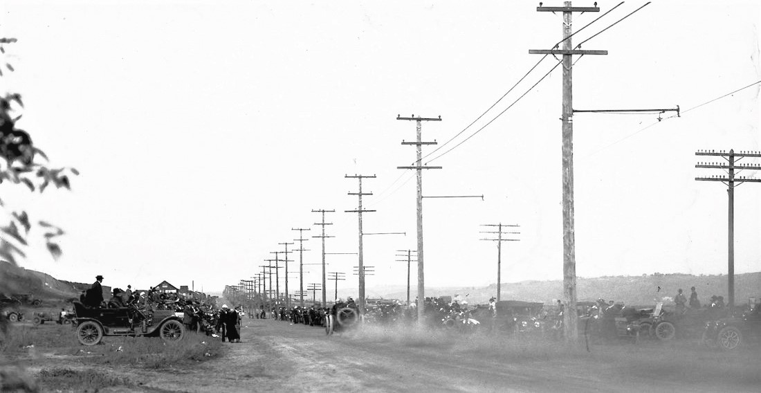 1915.Heading along Rosecrans. Note the power poles and spectator parking !