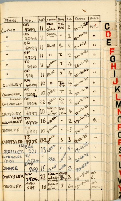 He used to assist at a local garage, and somehow or other, managed to record vehicles he'd probably filled with petrol or at least observed.