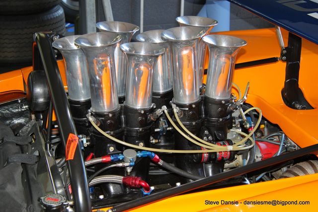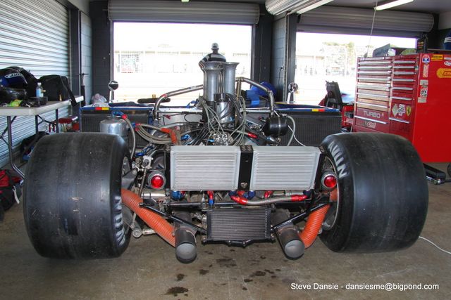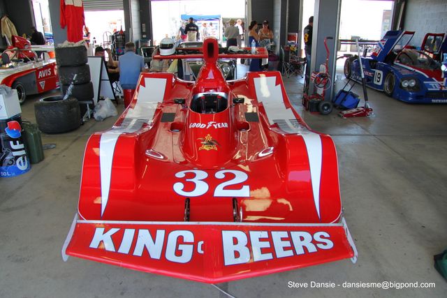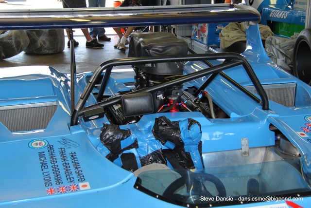 This is an interesting one. This is probably the last car built for the old original Can-Am series. This is the Sting GW1, originally built by John Collins for Gary Wilson (thats where the GW1 designation comes from), who first raced it in the Mid-Ohio round of the 1974 Can-Am championship, the very last year for Can-Am. Mid-Ohio was the fourth of just five rounds held that year. The Sting also raced in the last ever Can-Am race, at Elkhart Lake. A shame really, all that effort, only to have the Can-Am killed off after it only raced twice. Its now owned by Scott Drnek, and of all the cars racing in the Sports Car group at PI, gets the prize for having the largest motor: 9 litres!