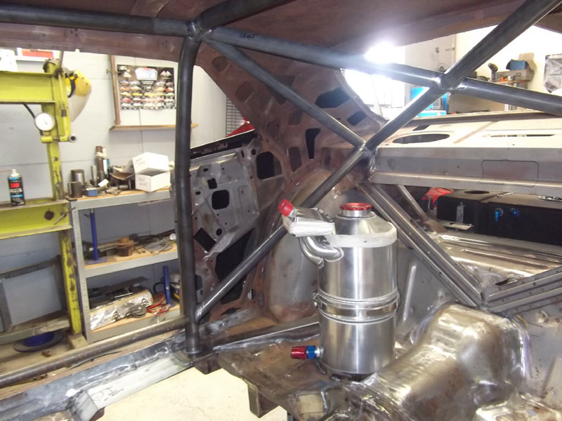 OK, lots of good stuff happening here, Bic has been busy as you can see. Rollcage has been constructed, drivers seat fitment all done, battery box and dry-sump tank fitment all done. Looking good!