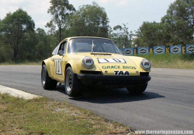 Leo Geoghegan in the Grace Bros Porsche in 1972, hangs the inside wheel out to cool off. Beautiful shot!