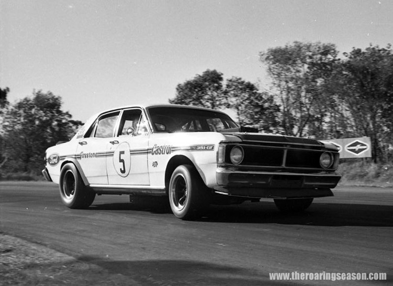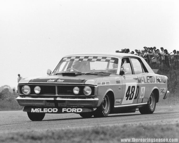 This is John Goss in his famous blue GTHO Phase III, at Surfers Paradise in 1972. Goss and the GTHO were competing in the South Pacific Touring Car series, this being Round 2, which the big Ford won.