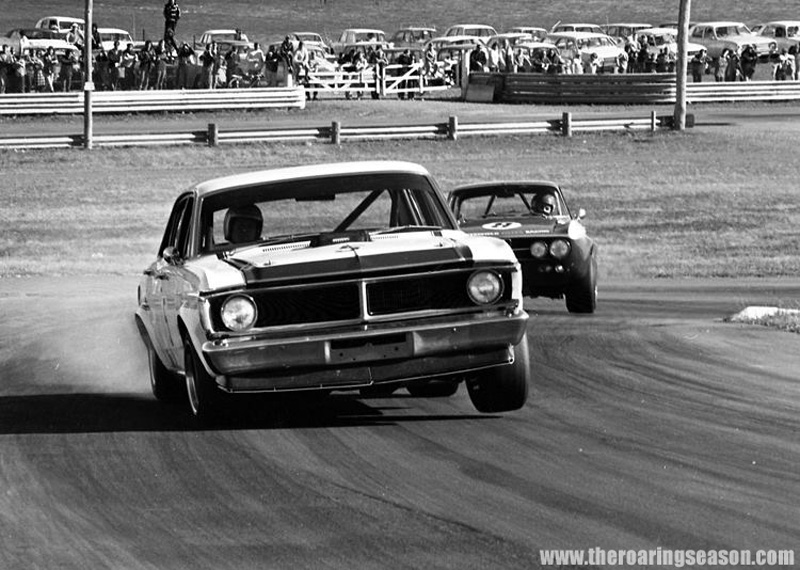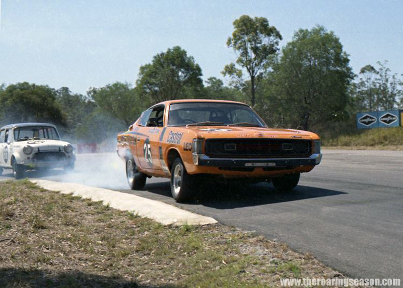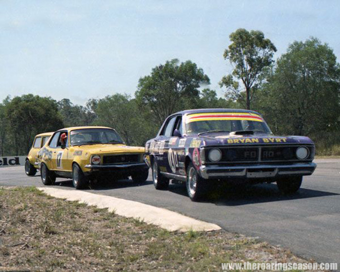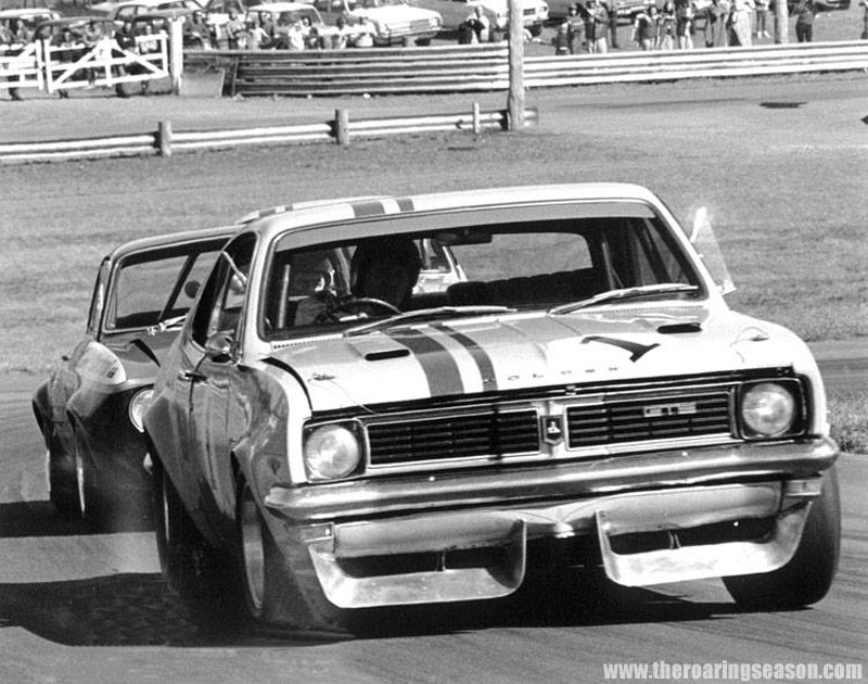 I really like this shot of the two popular Queensland racers going at it at Lakeside. John French in the famous purple Bryan Byrt Phase III GTHO fends off the young charger Dick Johnson in his Torana XU1. French was really at his racing career high point at this stage, and would gradually wind down his activities throughout the next few years. But he was also very keen to help the young Johnson establish himself, and was instrumental in getting him a couple of good rides which furthered his career. The pair eventually teamed up together at Bathurst, culminating in their famous win in 1981 in Dick's XD Falcon.