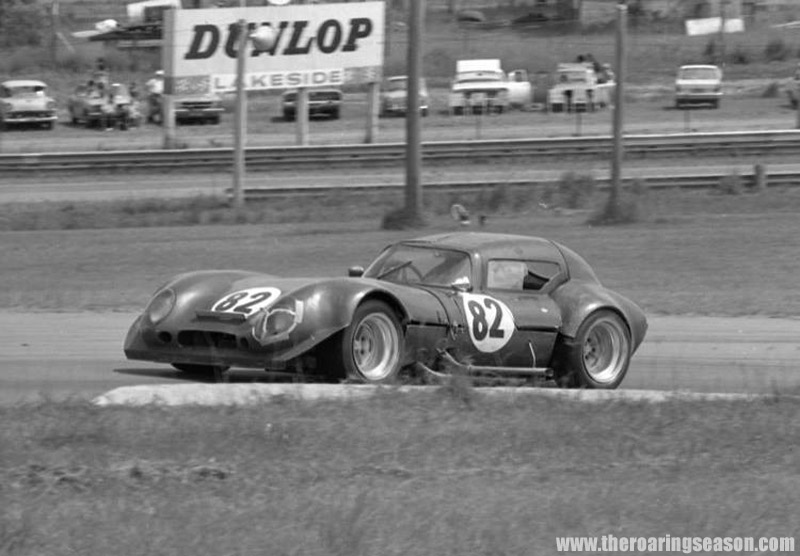 Bob Jane in his glorious Shelby factory 1968 Mustang Trans-Am racer, competing at Lakeside. The Mustang was supplied to Bob with one of the infamous tunnel-port motors, which produced so many issues for the Shelby team in 1968. Shelby team manager Lew Spencer was later quoted as saying most Trans-Am races in 1968 were six engine races; the two cars would each blow a motor in practice, qualifying, and the race! But it was fast!