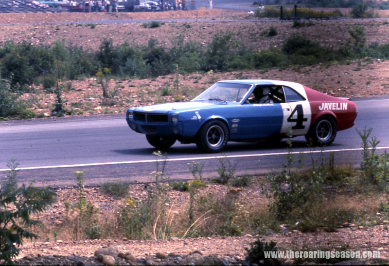 This is Peter Revson in one of the two factory AMC Javelins. The AMC project was treated as a bit of a joke by the competition when it was announced they'd be entering the Trans-Am. They weren't known for building performance cars. But Ron Kaplan was in charge of the build and preparation of the team, and ran a tight ship, and the Javelins improved throughout the year. They didn't win a race in 1968, but they took several second place finishes, and ran Ford real close to second in the Manufacturers Championship, coming up just short.