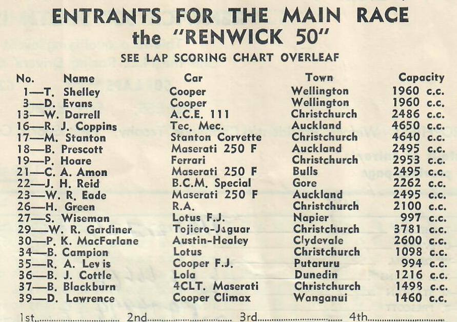 Renwick.. Some entry lists..1966 and a photo or two