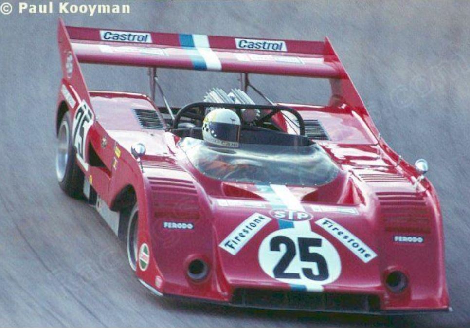 Can Am type racer for the European season in 1973. With a 7.5 litre Chev. turbo engine the McLaren M 8E began life at Trojan Works and was greatly modified by VDS along with the engine by "Morand" of Switzerland. It was a powerful beast bravely driven by the very talented Teddy Pilette. As previously mentioned Teddy was very diplomatic when questioned about this car he would say it was "terrific"