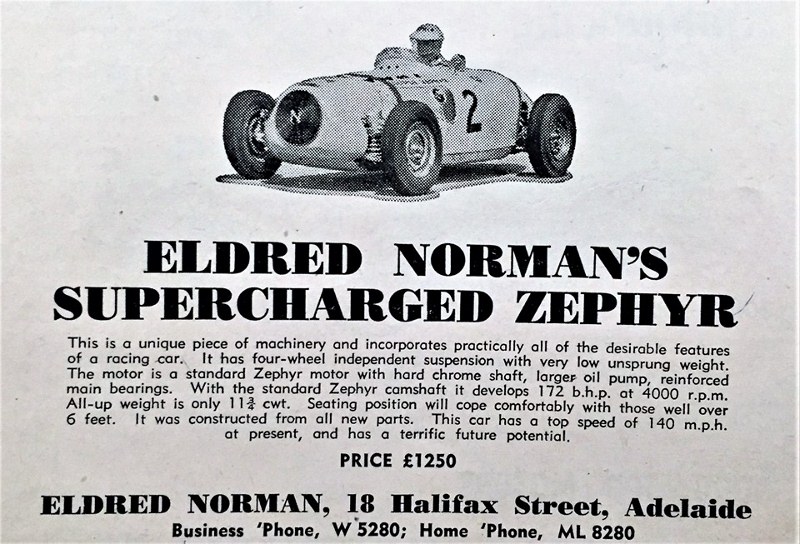 The 'Double 8' (as it was known within the Norman family) was sold after its fine performance at the AGP at Narrogin in 1951. It had two high-powered fuel pumps, by the way, to spray water over the front brakes to prevent them getting too hot. The buyer was Syd Anderson, and he raced it for several years including one trip to Singapore for the Grand Prix there. Later it deteriorated under the ownership of another Western Australian, Tony Carboni, and finished up being dismantled and destroyed.