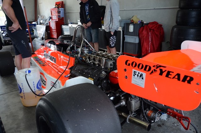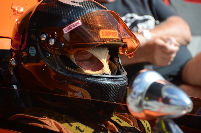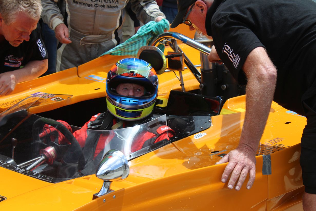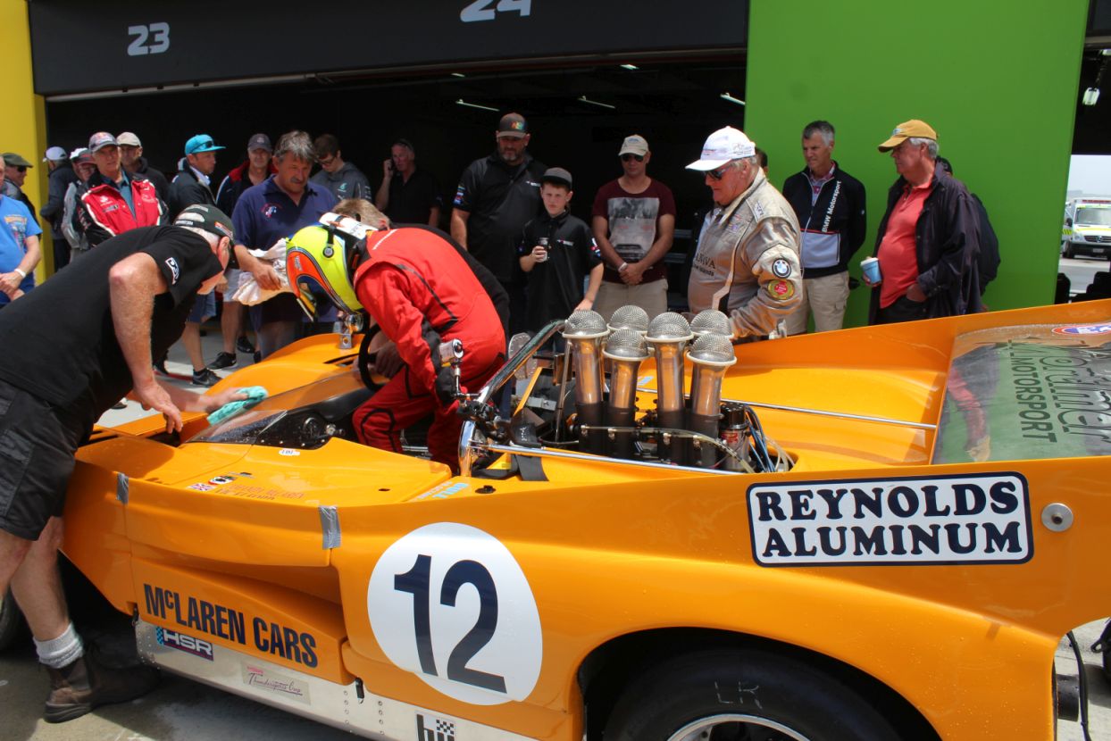 Kenny climbing aboard the Mortimer Motorsport McLaren M8 E/F