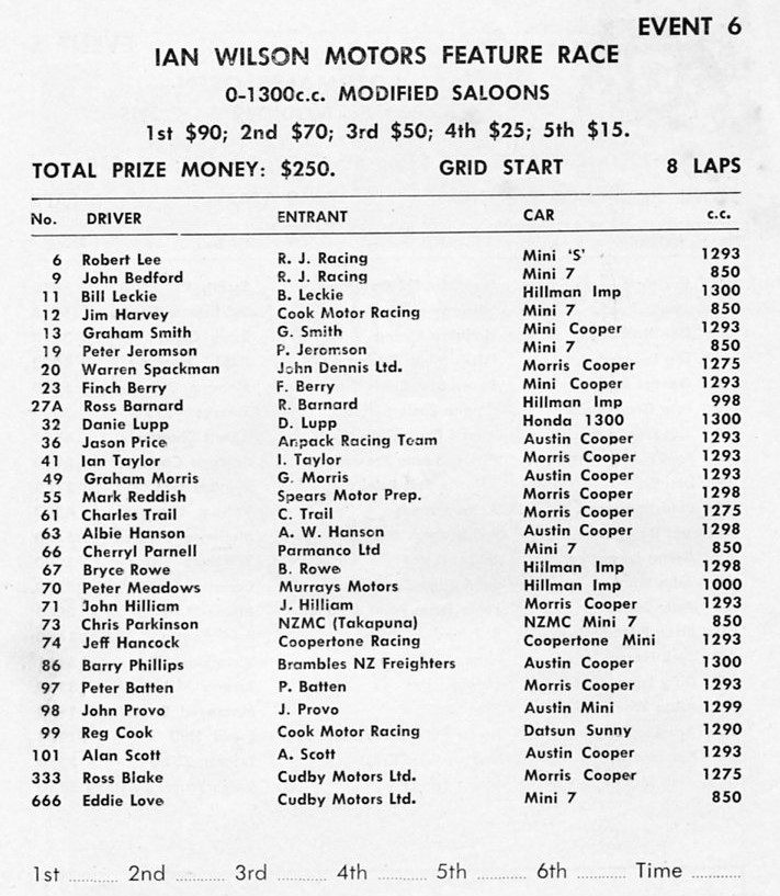 Its, 1975, Leckie, Cook, Philips Not sure who the #6 Mini I would be guessing, maybe Robert Lee?? is then Hancock.