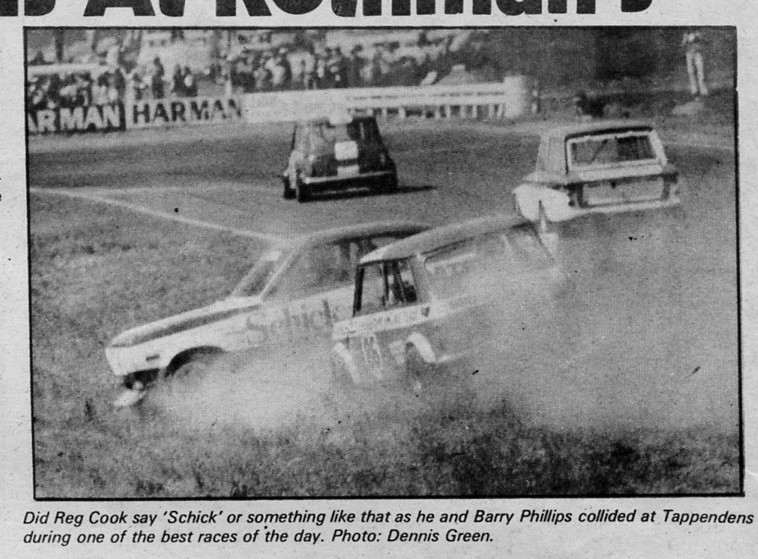 Found it! The COOKY WANTS A SPONSOR CAR was run at the November 27 1974 Bay Park meeting in the 0-1300cc BNSW races. The spin happened at the first corner of heat one.