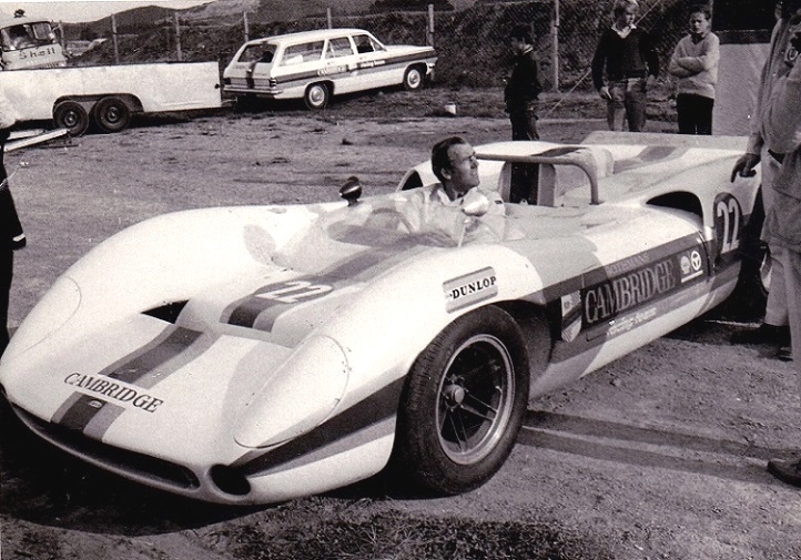 Oct. 1969. Jim Boyd in his Team Cambridge 1966 Lola T70 at Bay Park.