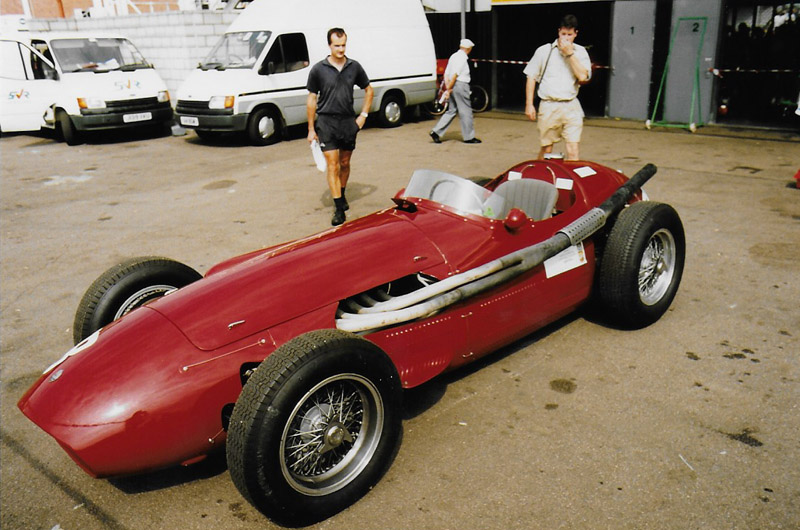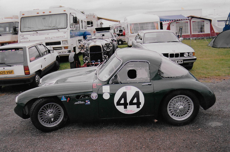 Lister Costin Chevrolet. Its my understanding the Chevrolet engines began appearing in Lister sports cars after the Jaguars, as a way of keeping them competitive. But in historic racing the Jaguar powered versions usually seem to be faster. This was also the case at the Silverstone Classic two decades ago. This car wasn't as fast as the Jag powered example.