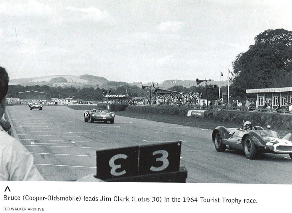 One shows Bruce leading the Tourist Trophy race at Goodwood in August 1964 in the Zerex Special and the other is just about a week or so later in the beautiful unpainted McLaren Elva Mk 1 # BMMR 1/64 Traco Olds V-8.
