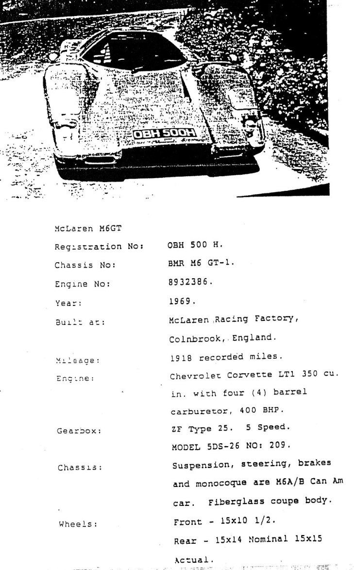 In 1969 and 1970 Bruce McLaren would sometimes drive his personal project car, the M6GT, from his London home down to Goodwood after stopping to do the shopping first !