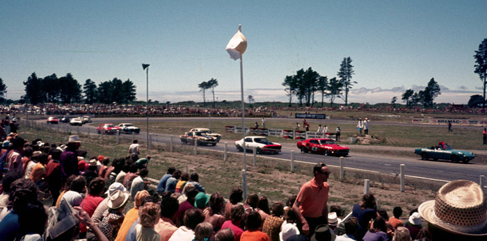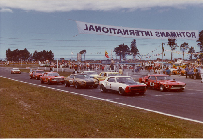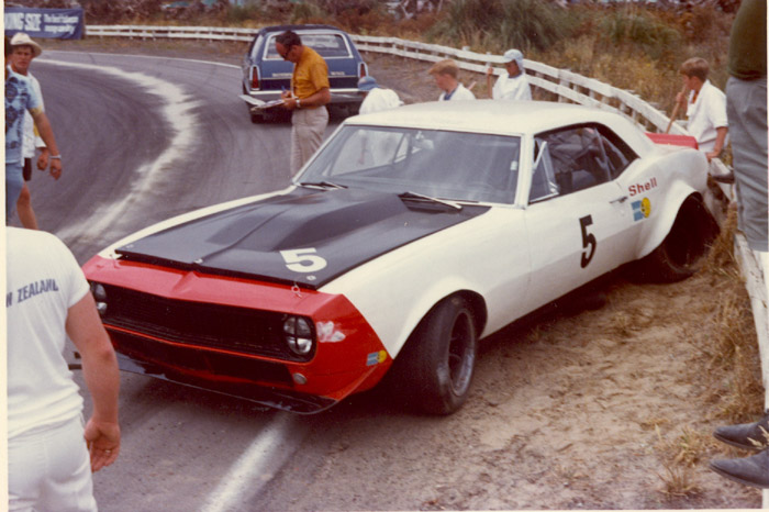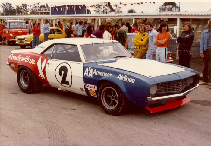At the Christmas 1972 Bay Park event, the promoters went wild, and imported four international saloon teams to take on the locals. Allan Moffat and Pete Geoghegan from Australia, Pete with his 600hp Super Falcon, Frank Gardner was over from Britain, with a '67 Camaro he'd been campaigning in the British Touring Car Championship and selected European races, and Joe Chamberlain returned, having raced in NZ at the 1970 Christmas event. As in 1970, Joe had a '69 Camaro which he'd been racing in the Trans-Am. He would have been at a disadvantage, given the Trans-Am rules had a maximum engine limit of 5,000cc, and 8" wide wheels, but he was a privateer who enjoyed his racing.