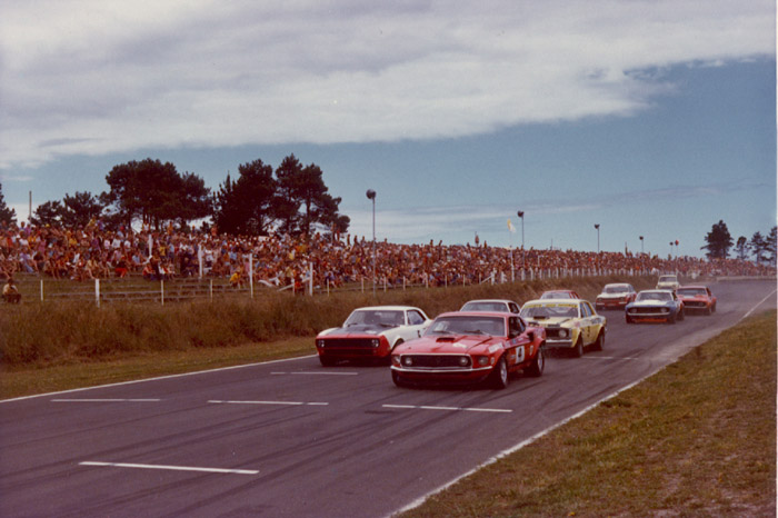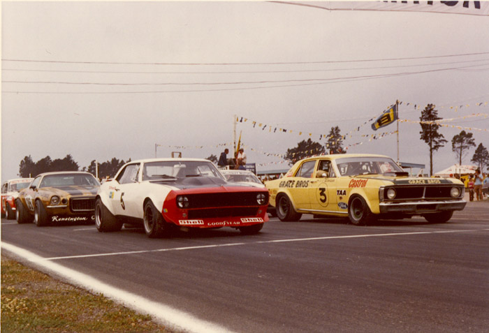 The local drivers included Paul Fahey in the PDL Mustang, Rod Coppins in the ex-T/G Racing '69 Firebird which Roaring Season member Bruce302 now owns, plus Dennis Marwood in the '69 Camaro Joe Chamberlain had with him the first time he visited NZ, and Red Dawson in his beautiful 1970 Kensington Carpets Camaro. Up from the South Island was top OSCA driver Clyde Collins in his V8 Cortina.