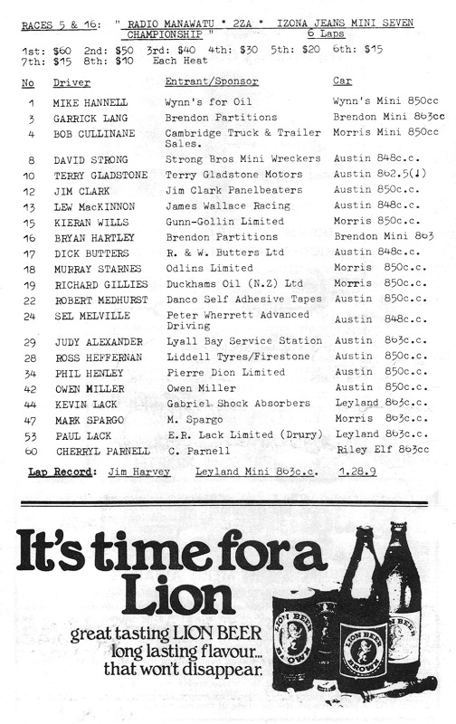 Any luck with this yet? At the NZFMR this year I was chatting with Colin Warrington who was racing in NZ with the Australian Trans-Am cars in the Historic Muscle Cars/U3 races. Colin is an ex-pat Kiwi who has lived in Queensland for several years. But back in the late '60s and early '70s when he was a young bloke he raced a Mini in the 1,000cc class against Barrie Phillips, Rod Collingwood, Jim Richards etc. He visits this site regularly in the hope some old photos might appear on here of him in the Mini.
