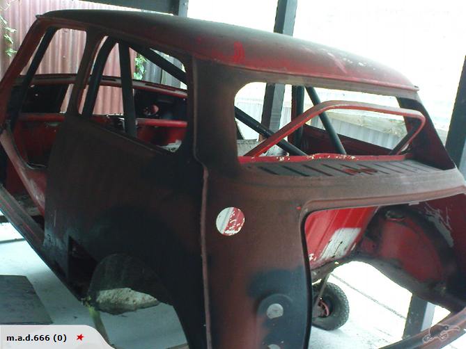 Just giving this another bump to see if there are any fresh leads or pics for this car. The current paint scheme is from AC Delco sponsorship. Original colour for the car is similar to the Austin Horizon Blue colour. Then lime green. Then Orange. the car must have run with the large flares in both orange and white. The car is still running the original brass door hinges. After looking at the cage today it is obvious that the car had a rear roll hoop and stays fabricated out of tube and bends. This actually looks gas welded. The front legs, bar across the top of the windscreen and side intrusion bar (missing) are roughly bent out of a slightly larger diameter tube and are attached to the main hoop via a D clamp arrangement. The rear bins and door bins are still there. The cage feet are bolted in.
