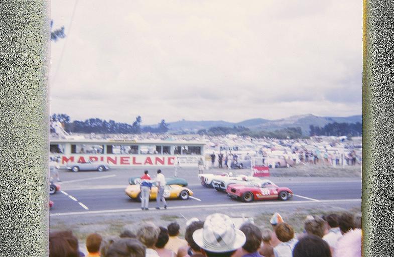 The HWM-Cadillac was imported in the mid-50's by the Avery brothers. As well as the Averys, it was driven later, mostly at Ardmore and Pukekohe, by Ron Roycroft, Roly Levis and once, I think, by Jim Boyd. Later it was owned by J.Donnelly, seen above in practice at the 1965 GP meeting, and then by George Hallen and John Monehan. It was a fairly reliable car it seems, and sometimes outlasted some of the smaller and faster stuff. A one stage it was painted a delightful purple shade, but I can't find a colour picture.