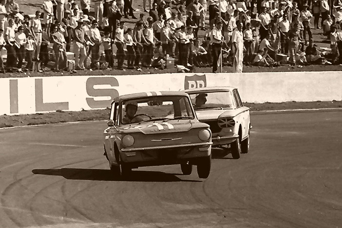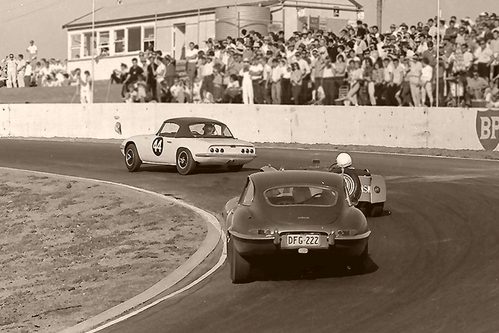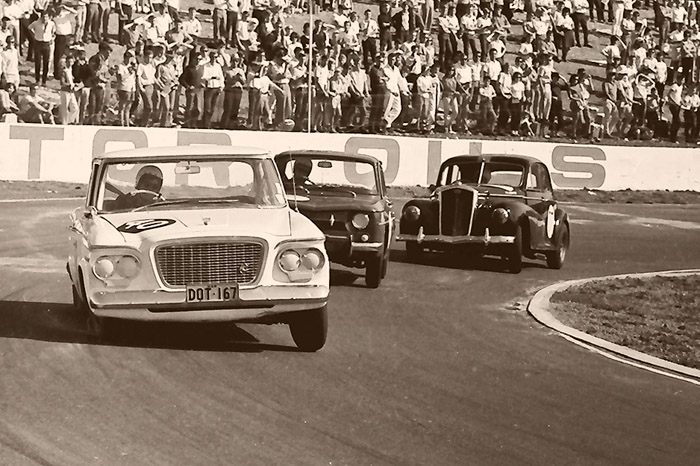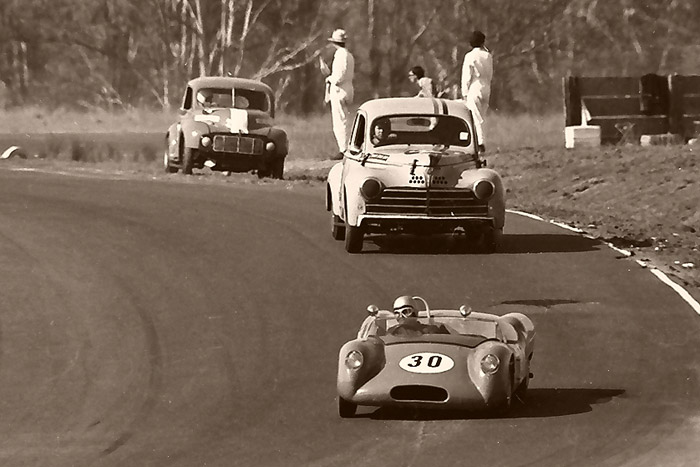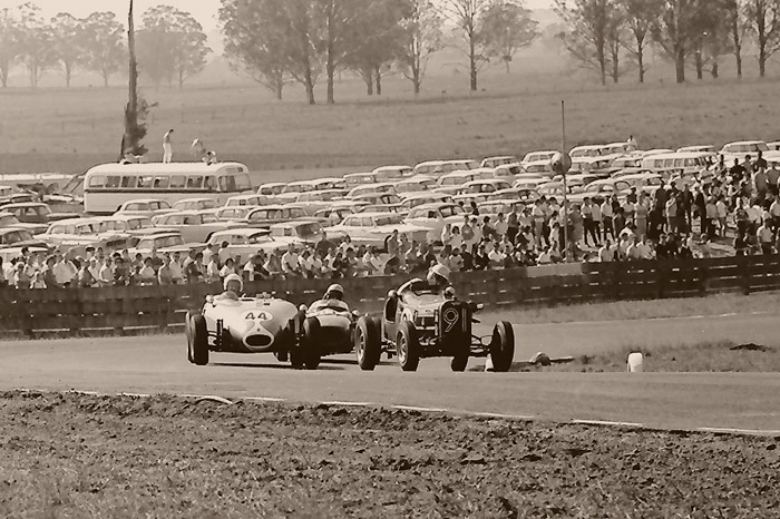 Thats for sure! Who says racing sports cars, production sports cars and saloons can't mix! The closing speeds must have been scary! But at this early stage, Oran Park had only been operating for two years, and was still mostly a club circuit, with the important NSW events taking place at Warwick Farm. I guess most races here were just loosely gathered grids of anything that wanted to run. Didn't seem to worry the punters though, there must be thousands lined up there!